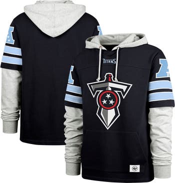 Show off your Tennessee Titans pride with this comfortable Double Header Blitz Cornerback Pullover Hoodie from '47. This stylish hoodie features a team logo fabric applique on the front and conference patch appliques on both shoulders for bold displays of Tennessee Titans pride. The fleece lining and midweight design make it perfect for moderate temperatures, ensuring cozy comfort whether you're cheering from the stands or watching the game from home.