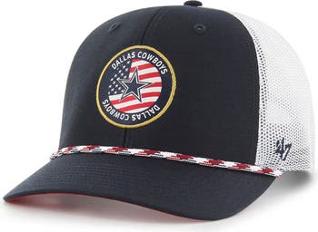 Bring a patriotic side to your Dallas Cowboys headwear with this Union Patch Trucker hat from '47. It features the Dallas Cowboys logo embroidered on an American flag design that coordinates with the multicolor rope. Mesh panels provide a breezy feel, and an adjustable closure makes customizing the fit easy.