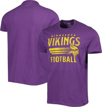 The '47 Purple Minnesota Vikings Wordmark Rider Franklin T-shirt is a must-have for true Vikings fans. With its crew neck and distressed details, this shirt offers a vintage look that stands out. Made from 100% cotton, it's comfortable and breathable, perfect for cheering on the Vikings all season. Show your support for the Minnesota Vikings with this stylish and comfortable t-shirt.