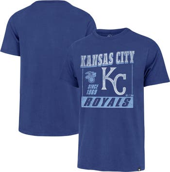 The Men's '47 Royal Kansas City Royals Outlast Franklin T-shirt is a must-have for loyal fans. Distressed screen print graphics and crew neck design embody the team's spirit. Durable cotton construction is perfect for stadium or casual wear. Whether cheering at Kauffman Stadium or representing your team, this T-shirt stylishly displays your Kansas City Royals pride.