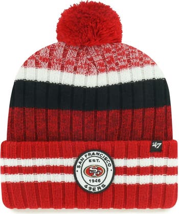 Keep warm while you're cheering for the San Francisco 49ers with this Quiver Cuffed Knit Hat with Pom from '47.Featuring the team name and logo embroidered on the cuff, this hat allows you to represent the San Francisco 49ers in cozy style when the temperature falls. The knit striped pattern adds a touch of flair to the classic cuffed design, while the pom on top completes the look with a playful touch.