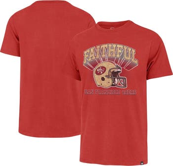 The Men's '47 Scarlet San Francisco 49ers Regional Franklin T-Shirt is a must-have for any loyal San Francisco 49ers fan. Officially licensed, this tee boasts distressed screen print graphics that proudly showcase your team spirit. Crafted from soft cotton, this comfortable crew neck t-shirt is perfect for game day or any occasion when you want to show your unwavering support for the San Francisco 49ers.