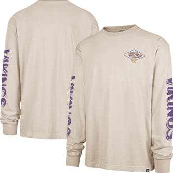 This '47 Minnesota Vikings Cairn Ravine Foundation Long Sleeve T-Shirt makes a fine addition to your gameday wardrobe. It features heavyweight cotton jersey material, providing a sturdy structure that retains its shape with every wear. The woven clip tag at the bottom hem adds an element of authenticity, while the relaxed fit offers loose, roomy comfort across the chest, shoulders, and body. With distressed printed team graphics at the left chest and on both sleeves, it's the perfect way to boldly display your Minnesota Vikings pride while enjoying premium comfort and style.