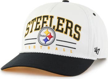 Rep your squad in a fresh way with this Pittsburgh Steelers Roscoe Two-Toned Hitch Adjustable Hat from '47.Featuring a retro-inspired silhouette with a pinched five-panel crown, this hat offers a relaxed fit and a slightly curved bill for a comfortable feel. The team wordmark and logo in raised embroidery across the front boldly display your love for the Pittsburgh Steelers.