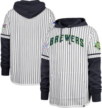 Men's '47 White Milwaukee Brewers Pinstripe Double Header Pullover Hoodie