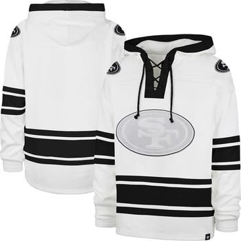 Embrace classic San Francisco 49ers style with a modern twist in this '47 After Image Superior Lacer with Hood. This incredibly soft sweatshirt features a thermalined hood for added warmth and comfort. Midweight fleece construction makes it perfect for moderate temperatures, while twill team graphic appliques provide a stylish touch.