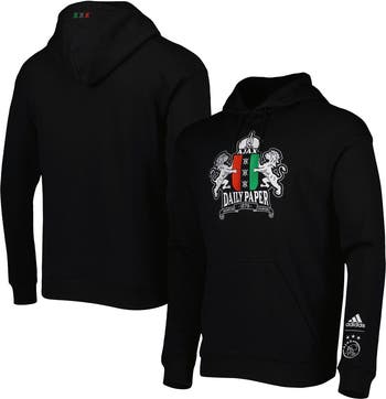The adidas Black Ajax Daily Paper Pullover Hoodie is the ultimate way to show unwavering support for the legendary Ajax. Embroidered graphics and a front pocket pouch add style, while the drawstring hood and midweight cotton construction provide comfort and warmth. Whether cheering from the stands or displaying Ajax pride, this hoodie perfectly represents your team.