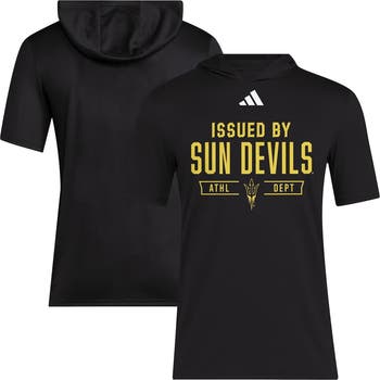 Elevate your training regimen while showing the Arizona State Sun Devils some love with this 2025 Sideline Training Hooded T-Shirt from adidas. Made with lightweight and flexible AEROREADY fabric that's perfect for active lifestyles, this tee features a non-adjustable hood for additional coverage from the elements. The printed graphic across the chest make it easy to show your team pride at the gym, around the home or on your next outdoor adventure.