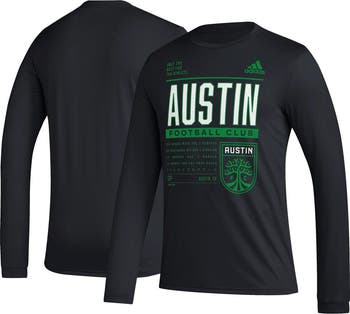 Celebrate your unwavering support for Austin FC with the men's adidas black Austin FC Club DNA long sleeve AEROREADY T-shirt. Crafted from recycled polyester, this breathable tee features screen-printed graphics that proudly display the Austin FC logo. Its AEROREADY technology wicks away moisture, keeping you comfortable and focused on the game. Whether you're cheering from the stands or representing your team off the field, this T-shirt is the perfect way to show your Austin FC pride.