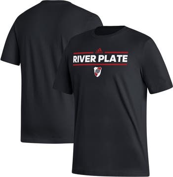The adidas Black Club Atltico River Plate Dassler T-shirt is a must-have for loyal Club Atltico River Plate fans. Crafted from soft cotton, this tee offers comfort while showcasing the iconic club crest, proudly displaying your allegiance to the legendary Argentine football club. Whether cheering from the stands or showing support, this t-shirt is the perfect way to represent the Primera Division Argentina champions.