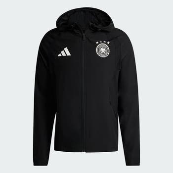 Get ready to show your support for Die Mannschaft with this Germany National Team Tiro Travel Raglan Full-Zip Hoodie. This sleek windbreaker offers a slim fit, perfect for a modern look, and features ergonomic cutlines and raglan sleeves for ultimate freedom of movement. The adidas FIFA x World Cup 2026 Tiro Travel Raglan Full-Zip Hoodie provides excellent protection against the elements with an adjustable scuba hood and zippered pockets for secure storage, so you're always prepared to cheer on the Germany National Team in style.