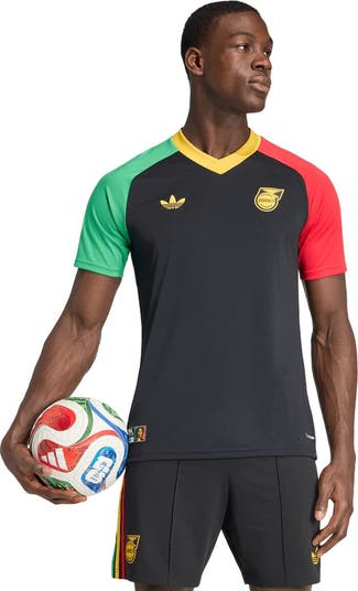 Show your support for the Reggae Boyz with this Jamaica National Team Pre-Match Top. This sleek adidas jersey is designed for performance and style, perfect for showing your pride whether you're on the pitch or cheering from the stands. The slim fit provides a modern, streamlined silhouette, while the lightweight knit fabric ensures a smooth and stretchy feel for maximum comfort. Featuring a classic crew neck and sublimated design with embroidered fabric applique graphics, this top embodies the spirit and passion of Jamaican football.
