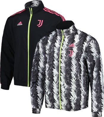 Represent your beloved Juventus with the adidas 2022/23 On-Field Team Logo Anthem Reversible Full-Zip Jacket. This reversible jacket features embroidered Juventus graphics on one side and sewn-on stripes on the other. Made from recycled polyester, it's lightweight and perfect for mild temperatures. Whether you're cheering for Juventus at the stadium or watching from home, this reversible jacket will keep you comfortable and stylish.