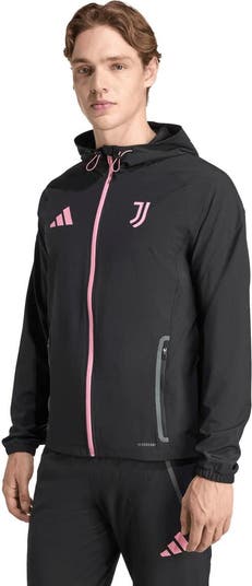 Gear up for your next trip just like the players on your favorite team with this Juventus 2025/26 Tiro Vis Tech Travel Jacket from adidas. Made with 100% recycled polyester, this jacket features AEROREADY technology that absorbs moisture and keeps you dry, ensuring comfort no matter where your travels take you. The slim fit design with stretch material and elastic cuffs allows for a snug yet comfortable fit, while the bungee-adjustable hood provides custom coverage from the elements. The screen-printed club and adidas logo with stripe detailing make this a play-ready jacket on and off the pitch, pairing perfectly with the 2025/26 Tiro Vis Tech Travel Pants.