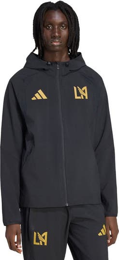 Brave the elements while showcasing your LAFC pride in this Tiro Travel Full-Zip Hooded Windbreaker. Featuring a lightweight design perfect for unpredictable weather, this adidas windbreaker offers protection without sacrificing mobility thanks to its ergonomic cutlines and raglan sleeves. The performance-inspired silhouette and adjustable drawcord hood seamlessly merge soccer fit with modern function, making this piece ideal for representing LAFC in style no matter the weather.