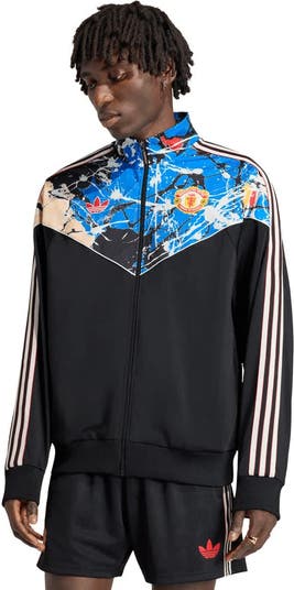 Celebrate Manchester's iconic music scene and your unwavering team devotion with this Manchester United X Stone Roses Full-Zip Track Jacket from adidas. Adidas is known for its collaborations across music, fashion and sports, making this jacket a true collector's item. The jacket showcases a striking Stone Roses-inspired printed pattern on the upper half, alongside the signature adidas three-stripe design down the sleeves. A lightweight feel will keep you feeling fresh, while the regular fit ensures comfortable layering. With convenient pockets and durable rib-knit trim, this jacket is a surefire way to level up your fit.
