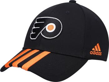 Add a striking finish to any ensemble with this bold Philadelphia Flyers Locker Room Three Stripe adjustable hat. This slick cap features an embroidered Philadelphia Flyers logo and the signature adidas three stripes on the bill. In addition, the hook-and-loop fastener strap makes finding the perfect fit on the fly simple.