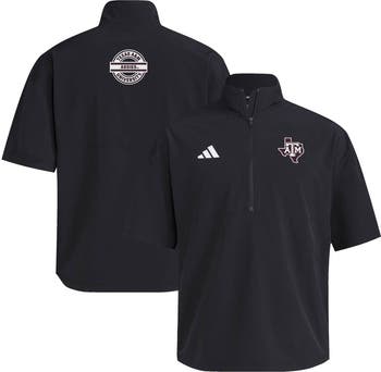 Prepare for rainy days with this Texas A&M Aggies 2024 Half-Zip Short Sleeve Training Jacket from adidas. The lightweight design is made with water-resistant ripstop fabric and a loose fit to keep you dry and comfortable. With metallic details, this Texas A&M Aggies jacket lets you represent your favorite team in functional style.