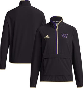 Gear up in Washington Huskies style with this adidas Coaches Sideline Half-Zip Jacket. This official sideline jacket is made with sustainable recycled polyester and features a mock neck for extra coverage. The heat-sealed team logo on the left chest adds a touch of authenticity, while the lightweight design ensures comfort during mild temperatures. The front pouch pocket with flap closure and zippered pocket provide convenient storage for your essentials, making this Washington Huskies jacket perfect for game day or a casual outing.