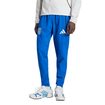 Elevate your ensemble with these sleek San Diego FC Tiro Travel Pants by adidas. These premium pants offer a modern take on a classic design, blending performance-inspired silhouettes with a tailored soccer fit. Crafted from a blend of recycled polyester and elastane, they provide exceptional comfort and flexibility for all-day wear. The ergonomic cutlines allow for unrestricted movement, while zippered side pockets ensure secure storage for your essentials. Complete with heat-sealed San Diego FC graphics, these pants are a certified must-have for soccer fans.