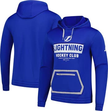 Rep your favorite NHL team in comfort and style with this Tampa Bay Lightning Team Pullover Hoodie from adidas. With a zippered front pocket and a quick storage pouch, this hoodie offers convenient storage for your essentials. The fleece lining provides added warmth and comfort, perfect choice for chilly game days, while the printed team graphics will have you ready for faceoff.