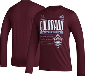 Represent your beloved Colorado Rapids in style with the adidas Burgundy Colorado Rapids Club DNA Long Sleeve AEROREADY T-Shirt. Crafted from recycled polyester, this breathable tee features screen-printed graphics that proudly display your team's logo. AEROREADY technology wicks away moisture, keeping you comfortable and focused on the game. Whether you're cheering from the stands or showing your support off the field, this t-shirt is the perfect way to represent the Colorado Rapids and the MLS.