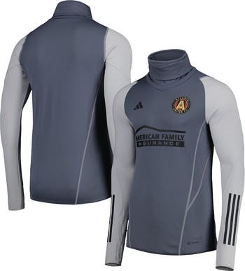 The adidas Gray Atlanta United FC Warm Raglan COLD.RDY Top is the perfect way to show your support for the Atlanta United FC. Made from recycled polyester and spandex, this midweight top is suitable for moderate temperatures and features screen-printed graphics that showcase your team pride. Raglan sleeves and thumbholes in the cuffs provide added comfort and warmth, while the turtleneck keeps you cozy on chilly game days. Whether you're cheering from the stands or just showing your support, this top is a must-have for any Atlanta United FC fan.