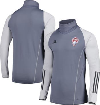 The adidas Gray Colorado Rapids Warm Raglan COLD.RDY Top is the perfect way to show your support for the Colorado Rapids. Made from recycled polyester and spandex, this midweight top is suitable for moderate temperatures and features flatlock stitching for added comfort. The raglan sleeves and rounded droptail hem provide a stylish and comfortable fit, while the heat-sealed graphics and screen-printed graphics proudly display your Colorado Rapids pride. Whether you're cheering from the stands or just showing your support, this top is a must-have for any Rapids fan.