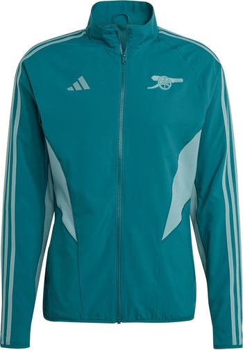 Prepare for match day with the adidas Arsenal 2023/24 Anthem Full-Zip Jacket. This Arsenal jacket features a heat-sealed applique and a mock neck to keep you warm and stylish on game day. The one-sided zippered pocket with zipper garage and the locker loop inside the collar add convenience and functionality. Whether you're cheering on the Gunners at the Emirates or watching from home, this jacket will keep you warm and stylish.