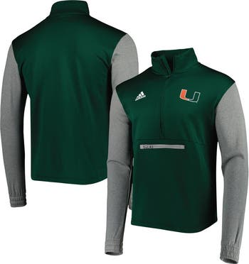 When the temperature drops, layer up in style with this Miami Hurricanes Team half-zip top from adidas. This lightweight gear features AEROREADY technology to keep you dry, and the polyester fleece sleeves offer added warmth in the chilly weather. A zippered pocket on the front of the pullover is perfect for keeping your essentials handy and protected.