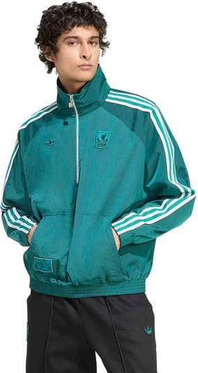 Celebrate your unwavering dedication to Liverpool with this Terrace Icons Half-Zip Jacket from adidas. The Terrace Icons collection lets you show your love for the club in retro style, borrowing from the classic adidas soccer labels with a stylish finish. adidas' iconic three-stripe design extends down the sleeves and club and brand graphic appliques are embroidered on the chest.