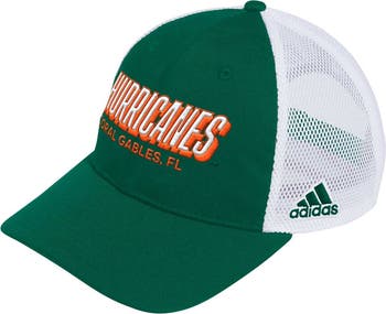 Men's adidas Green Miami Hurricanes Mascot Block Letter Slouch Trucker Adjustable Hat