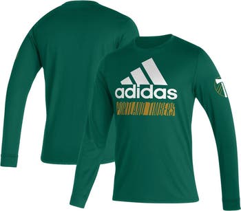 Celebrate your unwavering support for the Portland Timbers with the men's adidas green Portland Timbers vintage AEROREADY long sleeve t-shirt. This officially licensed tee features screen print graphics that proudly display the Portland Timbers logo, showcasing your allegiance to the MLS team. The AEROREADY technology wicks away moisture, keeping you comfortable and focused on the game. Whether you're cheering from the stands or representing the Timbers off the field, this long sleeve t-shirt is the perfect way to show your team spirit.