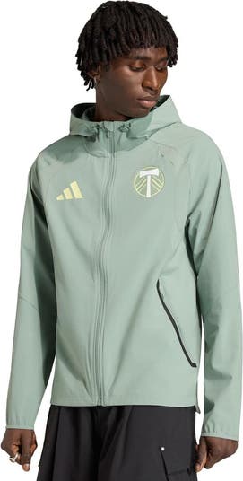 Brave the elements while showcasing your Portland Timbers pride in this Tiro Travel Full-Zip Hooded Windbreaker. Featuring a lightweight design perfect for unpredictable weather, this adidas windbreaker offers protection without sacrificing mobility thanks to its ergonomic cutlines and raglan sleeves. The performance-inspired silhouette and adjustable drawcord hood seamlessly merge soccer fit with modern function, making this piece ideal for representing Portland Timbers in style no matter the weather.