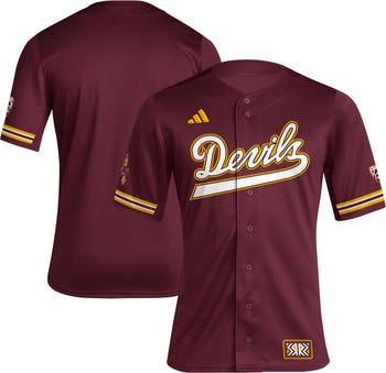 Show your love for your squad in this Arizona State Sun Devils Reverse Retro replica baseball jersey from adidas. It's designed just like the ones your favorite players wear on the field, so you can feel like part of the team whether you're cheering from the bleachers or taking a stroll around campus. Arizona State Sun Devils colors and official graphics provide the finishing touch.
