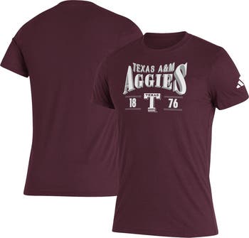 The adidas Maroon Texas A&M Aggies Along The Shadow Tri-Blend T-Shirt is the perfect way to show your support for the Texas A&M Aggies. Made from a comfortable recycled polyester, cotton, and rayon blend, this T-shirt features screen-printed graphics that proudly display the Texas A&M Aggies logo. The crew neck and short sleeves make this T-shirt perfect for any casual occasion, and the tri-blend fabric ensures it will be soft and comfortable to wear all day long. Whether you're cheering on the Aggies at a game or just showing your support around town, this T-shirt is a must-have for any fan.