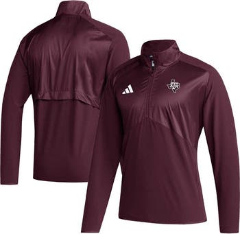 When you need to be prepared for a slight chill in the air, grab this Texas A&M Aggies Sideline quarter-zip jacket from adidas. It features the recognizable Texas A&M Aggies logo on the left chest as well as raglan sleeves, which will ensure you have a natural range of motion while you're out and about. The AEROREADY technology built into this jacket absorbs moisture and will keep you feeling dry throughout the day.