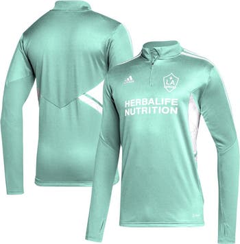 Designed for functionality and style, this LA Galaxy quarter-zip from adidas meets your training needs. It features breathable AEROREADY material that's perfect for keeping comfortable during intense sessions or drills and thumbholes to help keep the sleeves in place. Plus, the classic fit and lightweight design paired with club graphics make this LA Galaxy top a fan favorite.