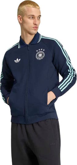 This Germany National Team 2006 AwayFull-Zip Anthem Jacket from adidas provides a statement piece for passionate football fans. Combining a retro touch with contemporary style inspired by on-field gear, the elegant design captures the electric atmosphere of international competition. Raglan sleeves allow you to move around freely in this Germany National Team jacket, while zippered pockets keep essential items secure.