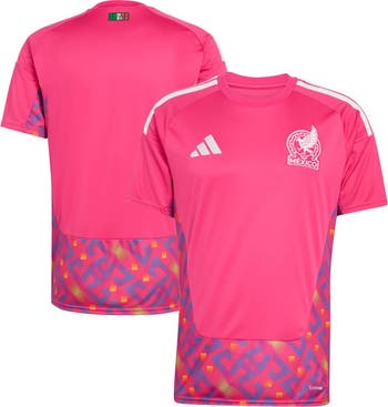 Embrace the vibrant passion of El Tri with this Men's adidas Pink Mexico National Team FIFA x World Cup 2026 Goalkeeper Replica Jersey. This jersey isn't just apparel; it's a symbol of national pride and the electrifying atmosphere of international soccer. The slim fit design offers a sleek and modern silhouette, while the lightweight fabric ensures optimal comfort whether you're cheering from the stands or playing your own match. Designed to mirror the on-field kits worn by the pros, this replica jersey showcases heat-sealed and embroidered fabric applique graphics that proudly display your allegiance. The tagless collar further enhances wearability by eliminating friction, allowing you to fully immerse yourself in the game. Showcase your unwavering support for Mexico as they compete on the world stage in 2026 with this striking and meticulously crafted goalkeeper jersey.