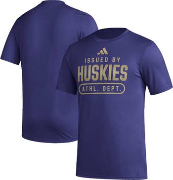 Represent your beloved Washington Huskies with the Men's adidas Purple Washington Huskies AEROREADY Pregame T-Shirt. This officially licensed tee features bold screen print graphics that proudly display your Huskies allegiance. Its crew neck and rounded droptail hem provide a comfortable fit, while the AEROREADY technology wicks away moisture to keep you dry and focused on the game. Whether you're cheering from the stands or showing your support off the field, this adidas T-shirt is the perfect way to celebrate your Washington Huskies pride.