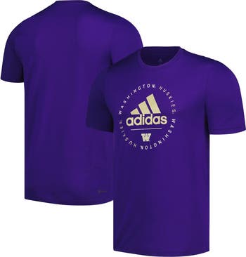 Men's adidas Purple Washington Huskies Stripe Up AEROREADY Pregame T-Shirt