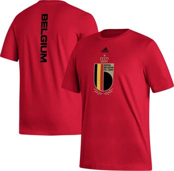 Boost your rotation of official Belgium National Team apparel with this adidas Crest T-shirt. The team crest sits prominently on the front while their name is spelled out going down the back to ensure your fandom is noticed from all angles. Its plush cotton fabric makeup is sure to keep you comfortable and ready to go for Belgium National Team match day.