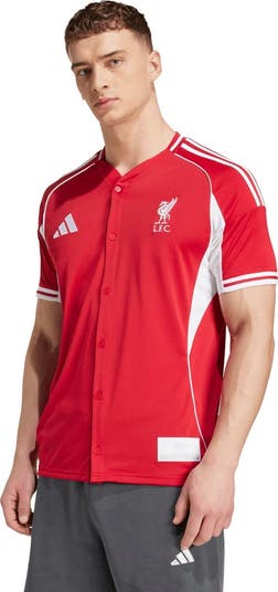 Show off your die-hard fandom with this Liverpool Full-Button Baseball Jersey from adidas. This unique jersey lets you merge your love for Liverpool with the iconic style of US sports. The embroidered team logo at the left chest and team wordmark across the back boldly display your pride, while the adidas three-stripe design down the shoulders adds a touch of athletic flair.