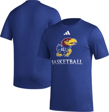 Celebrate your unwavering Kansas Jayhawks spirit with the Men's adidas Royal Kansas Jayhawks Fadeaway Basketball Pregame AEROREADY T-Shirt. This breathable tee features AEROREADY technology to keep you cool and comfortable during pregame warm-ups or cheering from the stands. The screen-printed graphics proudly display the iconic Kansas Jayhawks logo, showcasing your allegiance to the team. Whether you're a lifelong fan or a new supporter, this t-shirt is the perfect way to represent the Kansas Jayhawks and share your passion for college basketball.