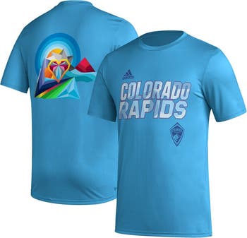 Represent your beloved Colorado Rapids with the men's adidas sky blue Colorado Rapids team jersey Hook AEROREADY T-shirt. Crafted from recycled polyester, this breathable tee features screen-printed graphics that proudly display the Colorado Rapids logo. Its crew neck and rounded droptail hem provide a comfortable fit, perfect for cheering on your team at the stadium or showing your support off the field.