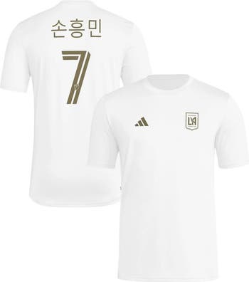 Show your support for LAFC and international soccer superstar Son Heung-Min with this unique pre-game tee. Featuring Son's name in Korean lettering on the back, this tee celebrates his global appeal and connection to the LAFC fanbase. With screen print graphics that showcase your LAFC pride, this Adidas tee is perfect for cheering on the Black & Gold.