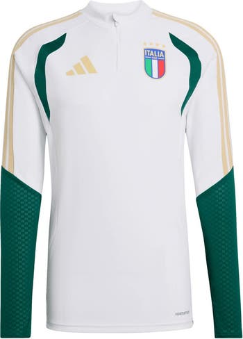 Elevate your training gear with this stylish Italy National Team FIFA x World Cup 2026 Tiro Quarter-Zip Training Top from adidas. Engineered with Formotion fabric technology, this top adapts to your body for zoned compression and superior support, so you can perform your best on and off the field. The lightweight design, complete with ergonomic stitching and heat-sealed graphics, delivers maximum comfort and lasting style, making it the perfect addition to your adidas and Italy National Team collection.