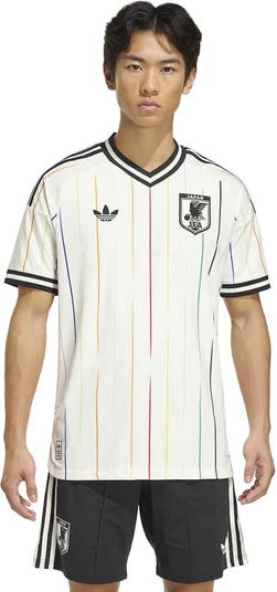 - DESIGN DETAILS: A celebration of football unity and community. The 2026 Away jersey embodies the concept "Colors Beyond the Horizon," showcasing a striking stripe graphic with 12 different colors. Each hue represents a player, while the central red stripe symbolizes the bond of the Japanese soccer family, emphasizing that family is the foundation of the national team.