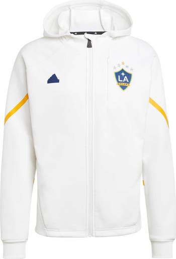 Prepare for the upcoming season with the adidas LA Galaxy 2024 Anthem Travel Raglan Sleeve Full-Zip Jacket. This LA Galaxy jacket is made from recycled polyester and spandex, and features heat-sealed stripes on the sleeves, embroidered fabric applique, and a zipper garage to prevent neck irritation. Whether you're cheering on the LA Galaxy at Dignity Health Sports Park or watching from home, this jacket will keep you comfortable and stylish all season long.